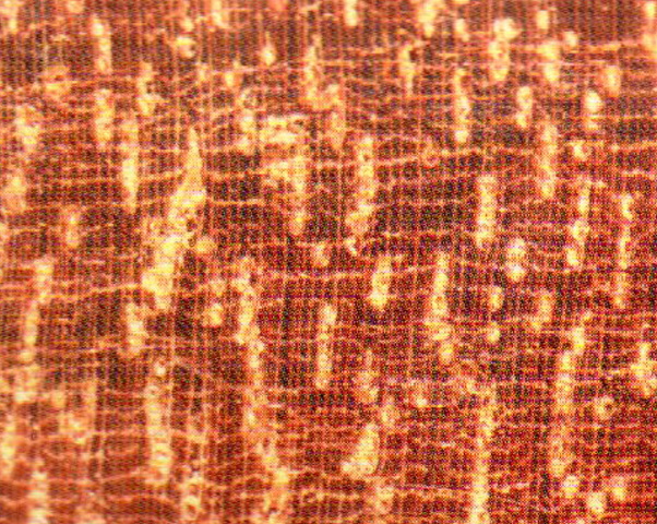 散孔材。管禮放大鏡下明顯,略多(duō),略小(xiǎo);單管孔及經列複管孔(2~5個);經向排列明顯;充滿黃白色的沉積物(wù)。軸向薄壁組織放大鏡下明顯,弦向線(xiàn)狀,細而密集,分(fēn)布均勻,常與木(mù)射線(xiàn)構成網狀。木(mù)射線(xiàn)放大鏡下明顯。密而窄。